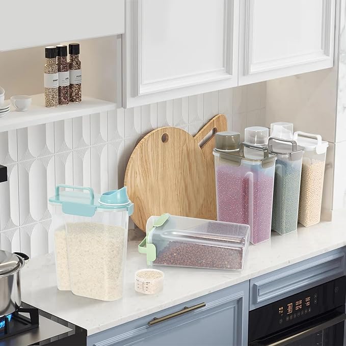 - MULTIPURPOSE STORAGE : Our pet food container is suitable for storing dog food、cat food、bird seed、fish food、rice、 dry food、cereals、oats、flour and other large and small grains, as well as washing powder used at home. It is also a good choice.
