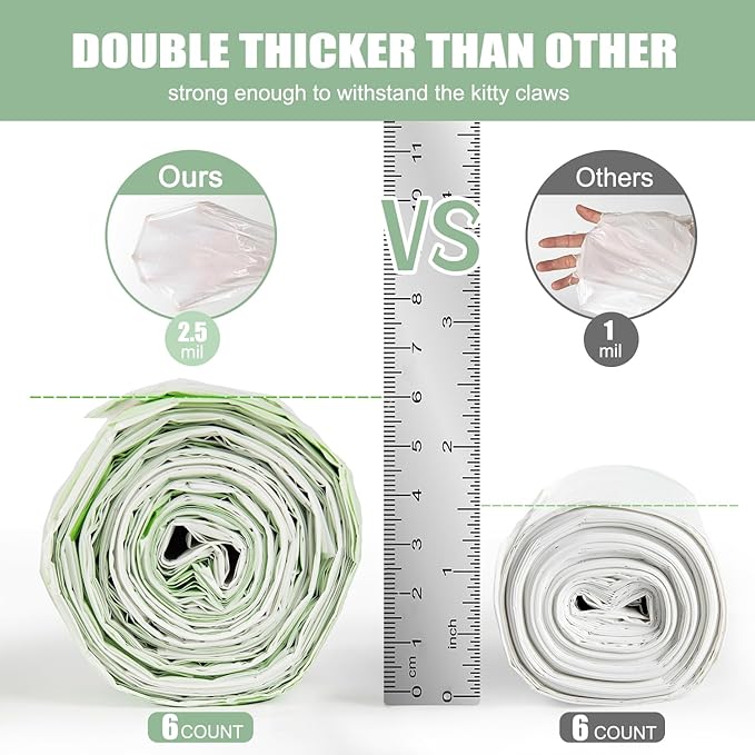 - 【Heavy duty】This cat litter bag is made of extra thick material which is 2.5MIL .It is not easy to puncture or tear. Sturdy enough to withstand the claws of cute cats.