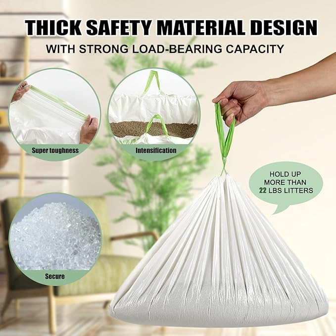 - 【Drawstring Closure】Each litter bag comes with a sturdy drawstring, so all you have to do is gently lift it up and it will do a good job of sealing it for you, isolating odors and making it easy for you to get your cleaning done.