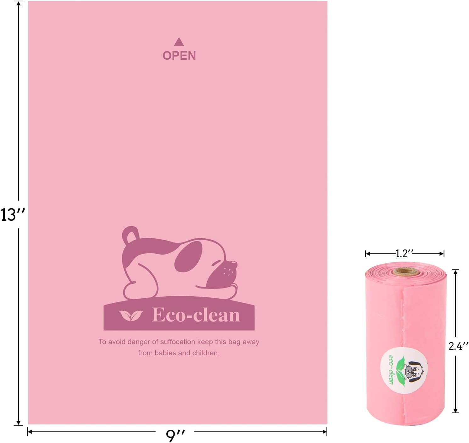- Eco-clean Dog Waste Bags: Unscented, 9”x13” doggy bags keep your hands safe, and odor contained.