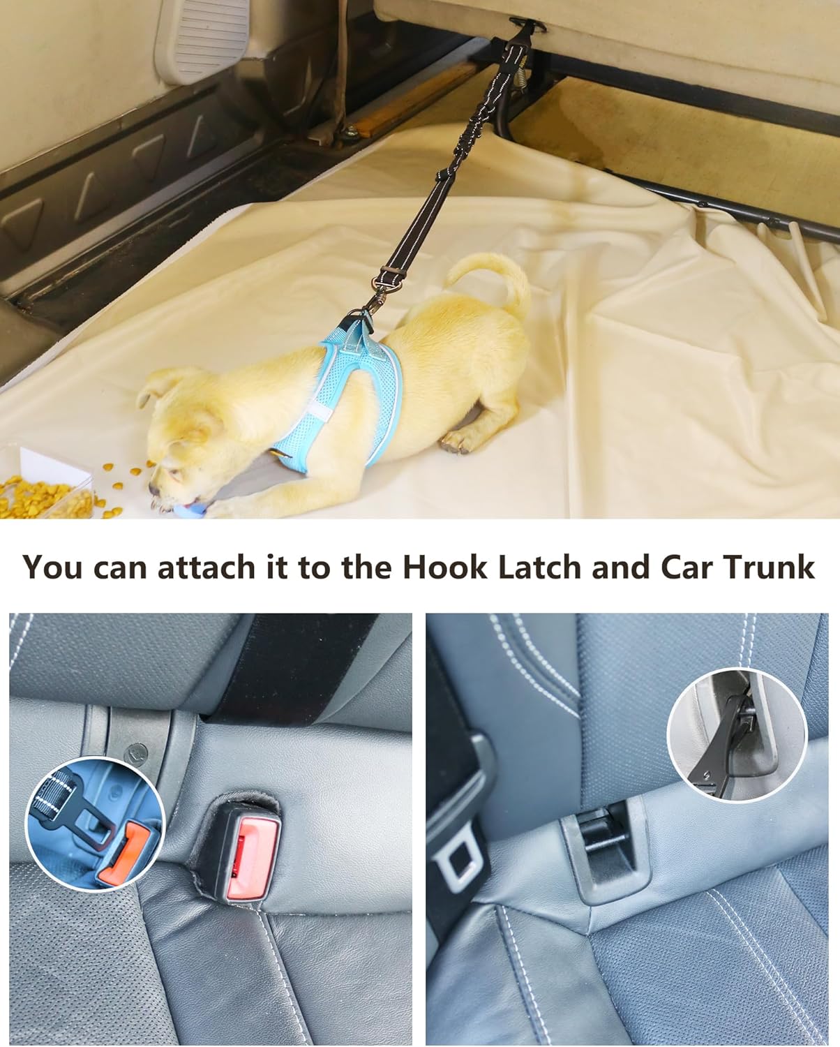 AUBELL Dog Seat Belt for Car,2 Pack Set 3-in-1 Adjustable Reflective Bungee Heavy Duty Dog Car Harness Tether with Clip Hook Latch & Buckle,Swivel Zinc Alloy Carabiner,Black+Black