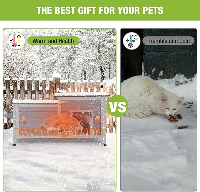- 🔥Heated - The cat house is equipped with UL-tested heating mat with high safety standards, providing safe and reliable warmth for your outdoor furry friends