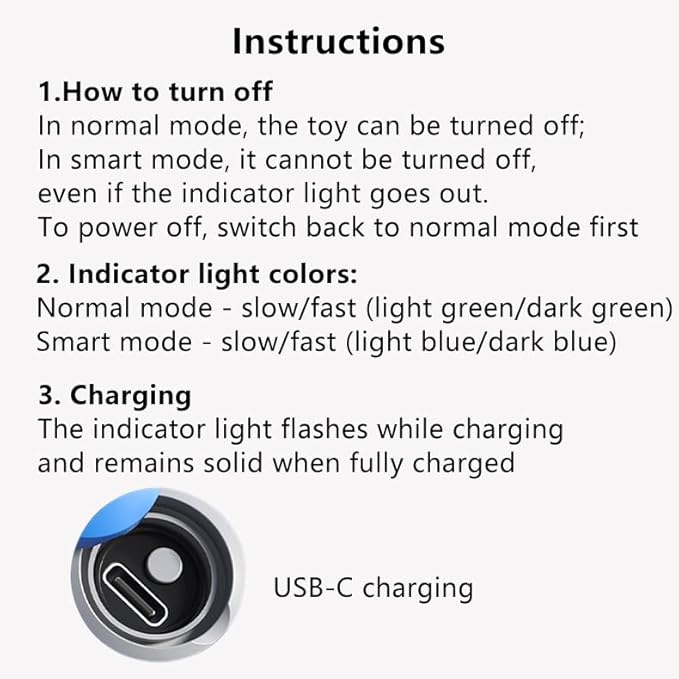 - 【Adjustable Speed】 Two-speed settings cater to different cat personalities. Short press the power button to cycle through four states: power on, fast mode, slow mode, and power off. Indicator light colors: Normal mode - slow/fast (light green/dark green); Smart mode - slow/fast (light blue/dark blue). For first-time use, start with slow mode to help cats gradually adapt