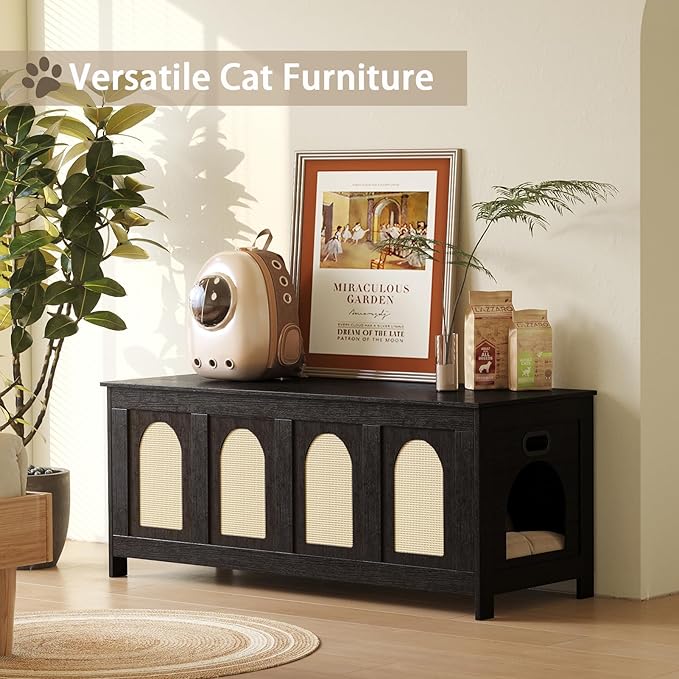 - 【Versatile Cat Furniture】A special gift to bring your cat the best life and love. Appealing appearance can blend well with home decor, transforming the eyesore cat's toileting area into an eye-catching one. Integrate the functions of cat washroom, cat house, side table, bedside table and TV stand into one
