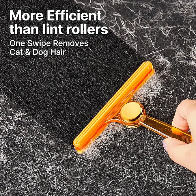 - Effortlessly Removes Pet Hair – This must-have pet hair remover tool is more efficient than traditional lint rollers, effortlessly removing fur from carpets, couches, sofas, and rugs in one swipe. Perfect for tackling fur problems left by cats and dogs on various surfaces.