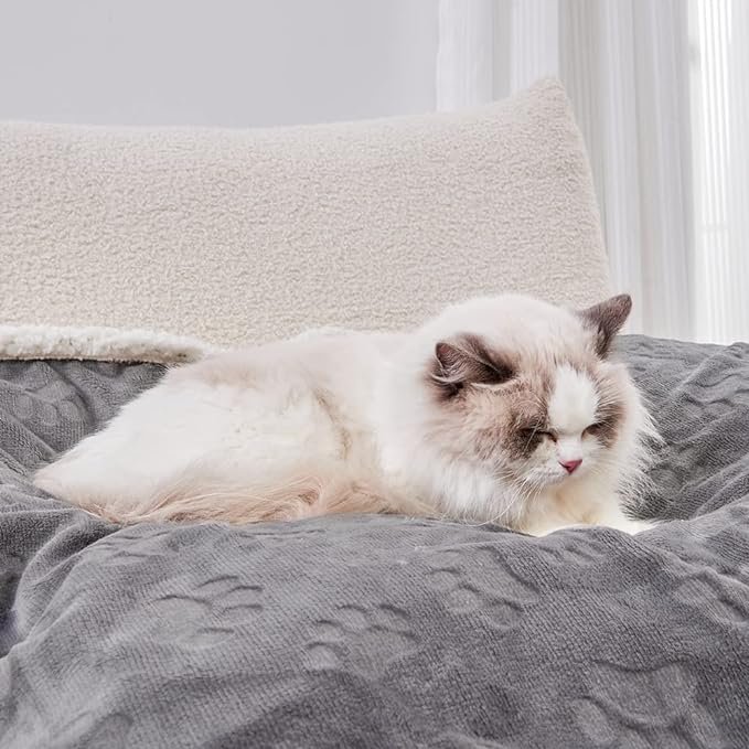 - PREMIUM DESIGN & MATERIAL FOR PET BABIES - Qeils dog blankets apply reversible material, lovely grey color and super soft & warm layered flannel on the top with cute pet paw prints, and cozy Sherpa fleece on the back, double sides with different thickness make it used for all seasons. Our dog blanket comes with Gift Wrap packed.