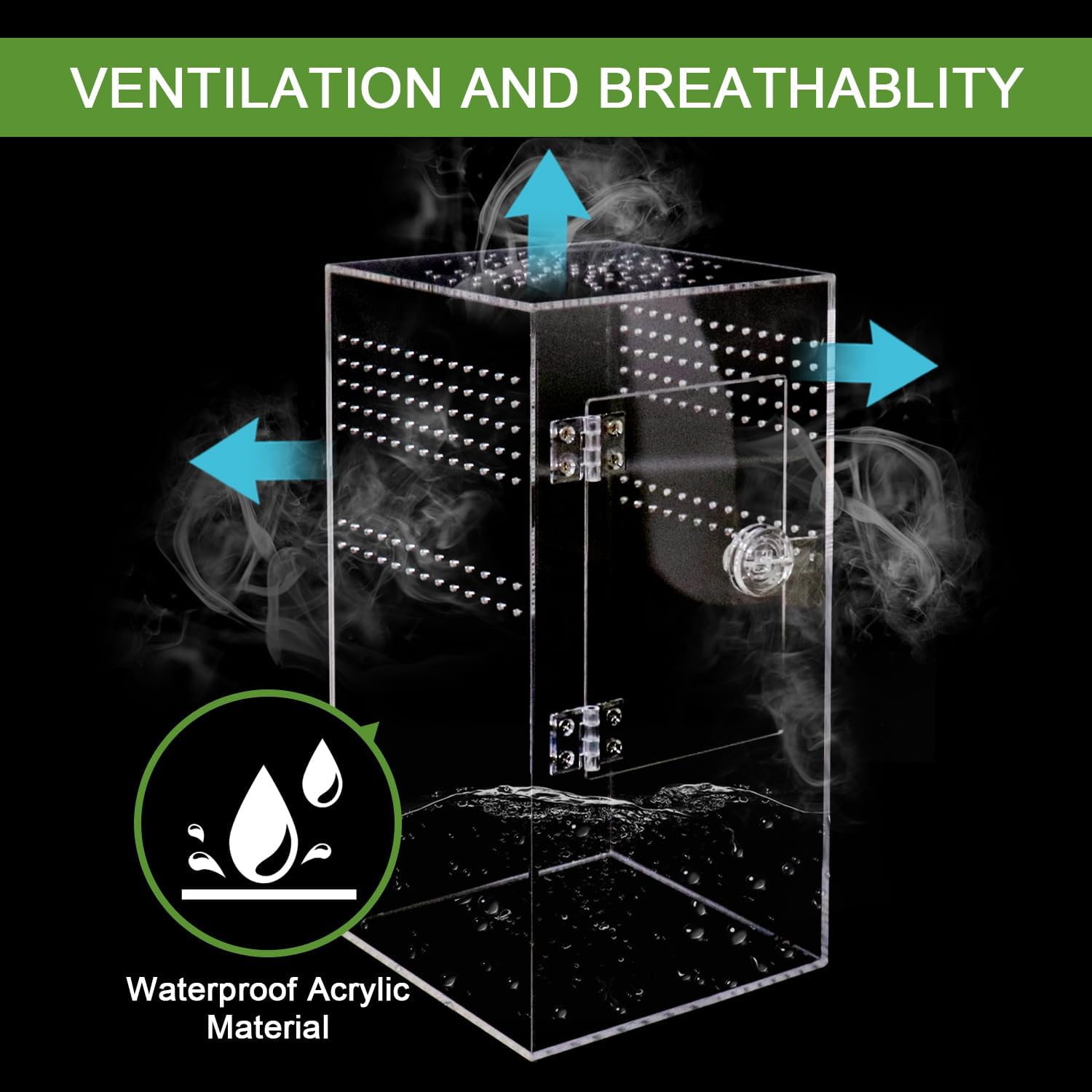 - 【Waterproof and Ventilated Spider Terrarium】Comes with molded bottom, this acrylic tarantula enclosure can hold water or substrate without leaking. Plenty of ventilation holes on side and top of the terrarium to ensure a constant airflow within