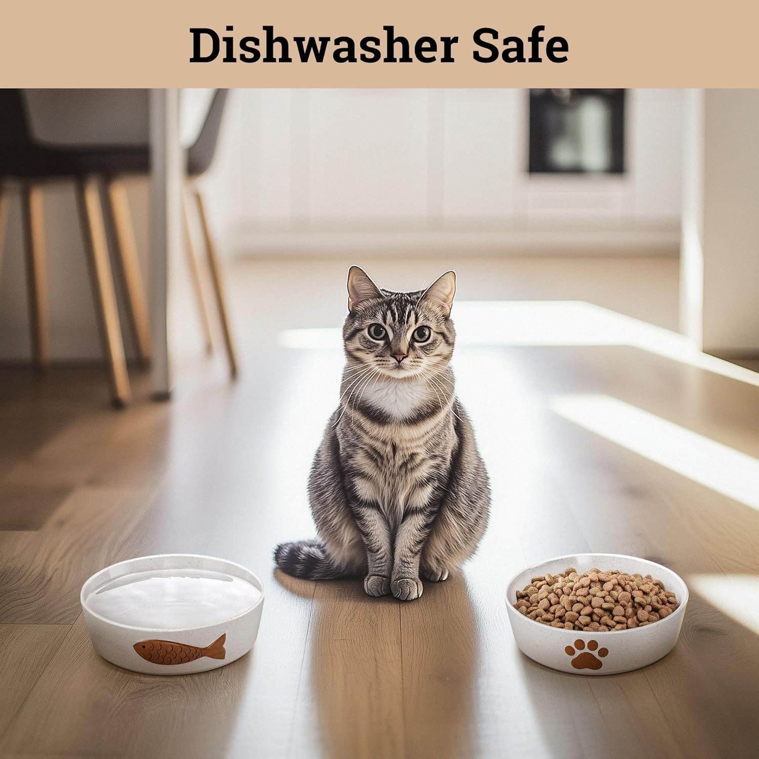 - DISHWASHER SAFE CAT BOWLS - This ceramic cat bowl set is food safe, dishwasher safe, and microwave safe. With thick walls, these ceramic cat bowls are sturdy, leak-free and weighty yet not too heavy.