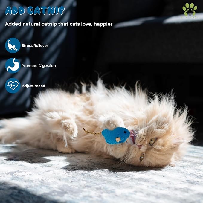 - The lightweight and soft design of these plush filled mice makes it effortless for your cat to pounce, chase, swat, and bat them around the house, providing hours of entertainment and exercise for your furry friend.