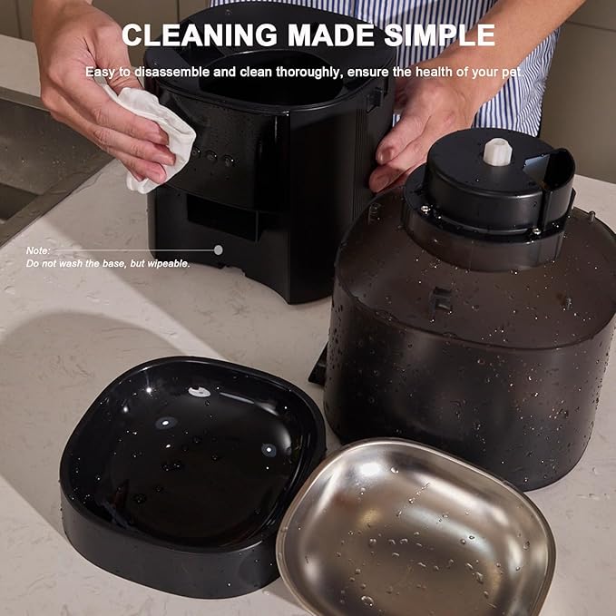 - Sealed Food Storage with Moisture Protection The food storage compartment is designed with an airtight seal to preserve food freshness. It also includes a dry box to protect the food from moisture, ensuring that your pet's meals stay fresh, crunchy, and safe from contamination.