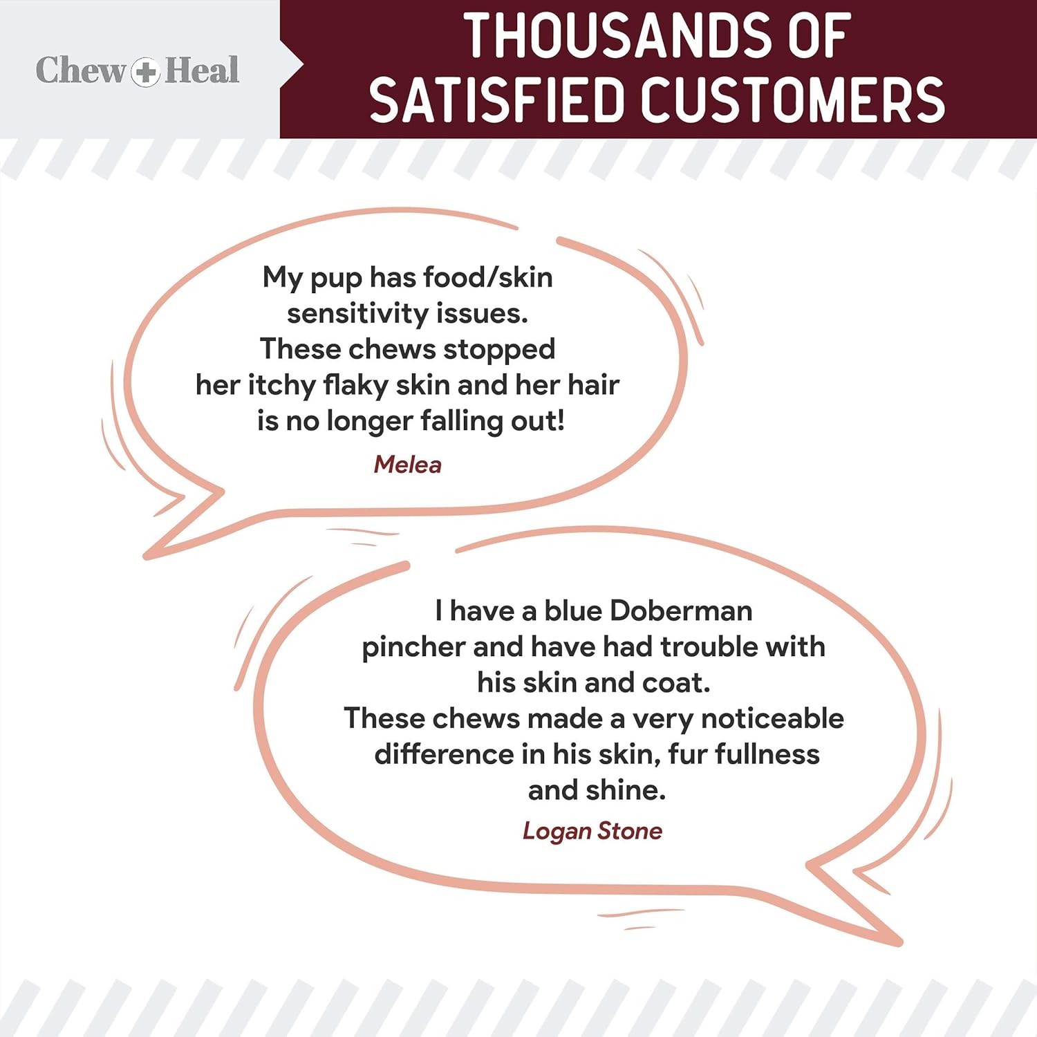 - PREVENTS SKIN ALLERGIES: This anti itch for dogs not only softens the skin, it gives it a glossy shine and helps prevent allergic reactions. This reduces dandruff and itchy skin, helping make your dog feel more comfortable in addition to being healthier! Say goodbye to greasy or dirty coats that have a unpleasant oily smell. These dog bites help kick-start the body’s natural processes to improve fur health.