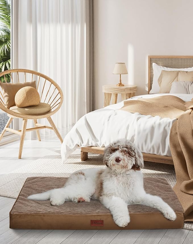OhGeni Orthopedic Waterproof & Machine Washable Dog Bed for Medium Large Pets, Suitable for Crates, Cat Mat with 25D Egg Crate Foam, Non-Slip Bottom & Removable Cover, 35 Inches(Coffee)