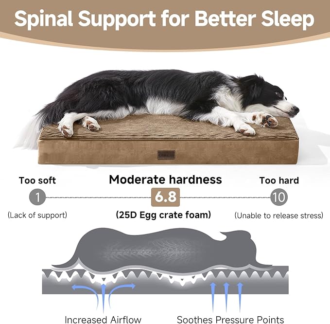 - Luxurious Comfort & Durability: Enjoy premium quality materials – plush corduroy surface with a 2-3 mm hair length, bonded with TPU for water resistance, and 25D Egg Crate Foam. Rest assured, our beds pass rigorous CP65 testing, ensuring safety and comfort for your pet.