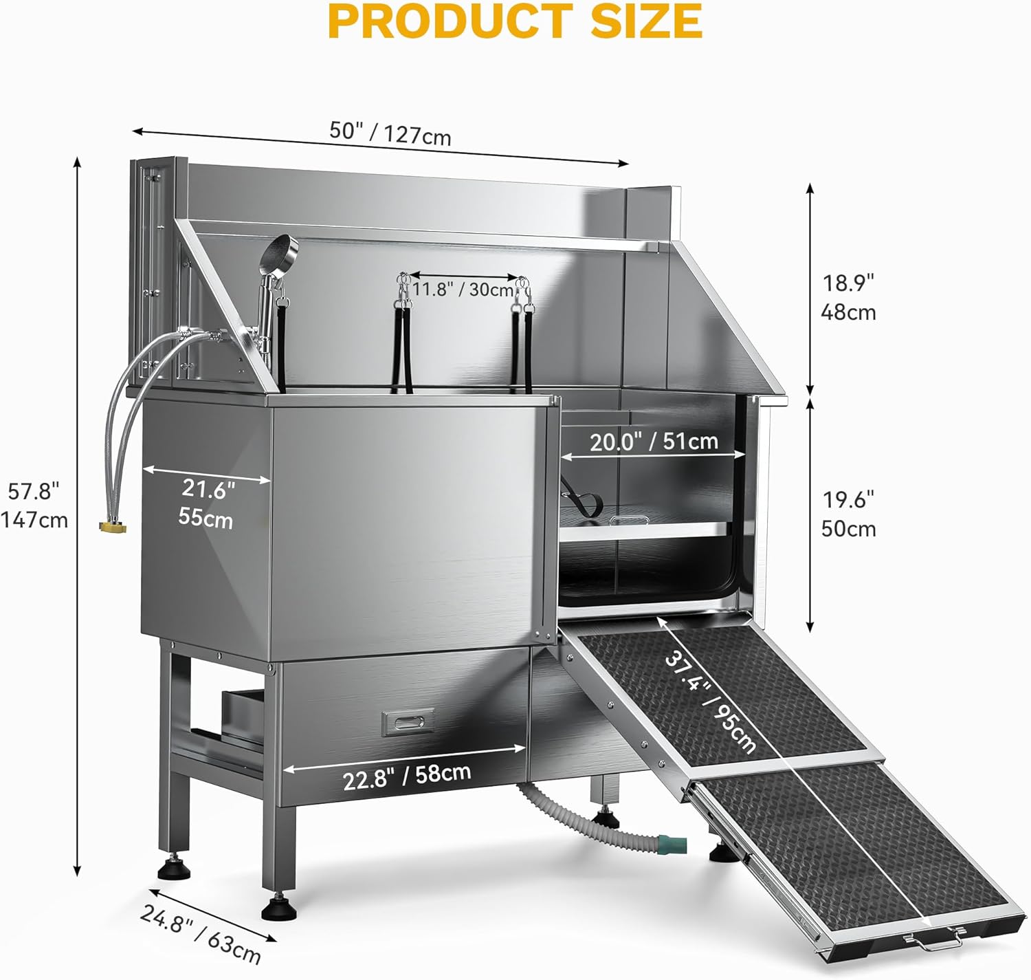 - Enhanced Structure: DWVO 50in dog bathtub boasts a tub body constructed from durable, corrosion-resistant 304 stainless steel; Its one-piece welded design enhances its longevity, promising years of reliable use