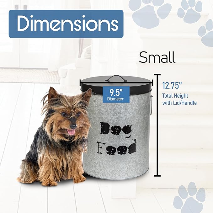 Small Dog 20lb Pet Food Storage Canister Dog Bin with Scoop – Durable & Airtight for Freshnesss, Minimalist Design & Recyclable, Small Metal Container for Kitchen Countertop