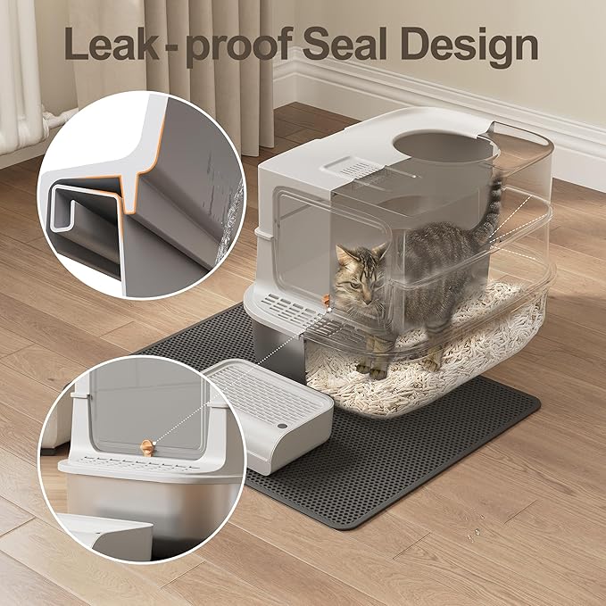 - 😽💟【One-Stop Solutions】Our covered litter box set includes the box, tracking mat, dual-use scoop, and filter pedal. The mat minimizes litter tracking, while the scoop remains conveniently accessible. This extra large cat litter box comes with a lifetime warranty and 24-hour customer support.
