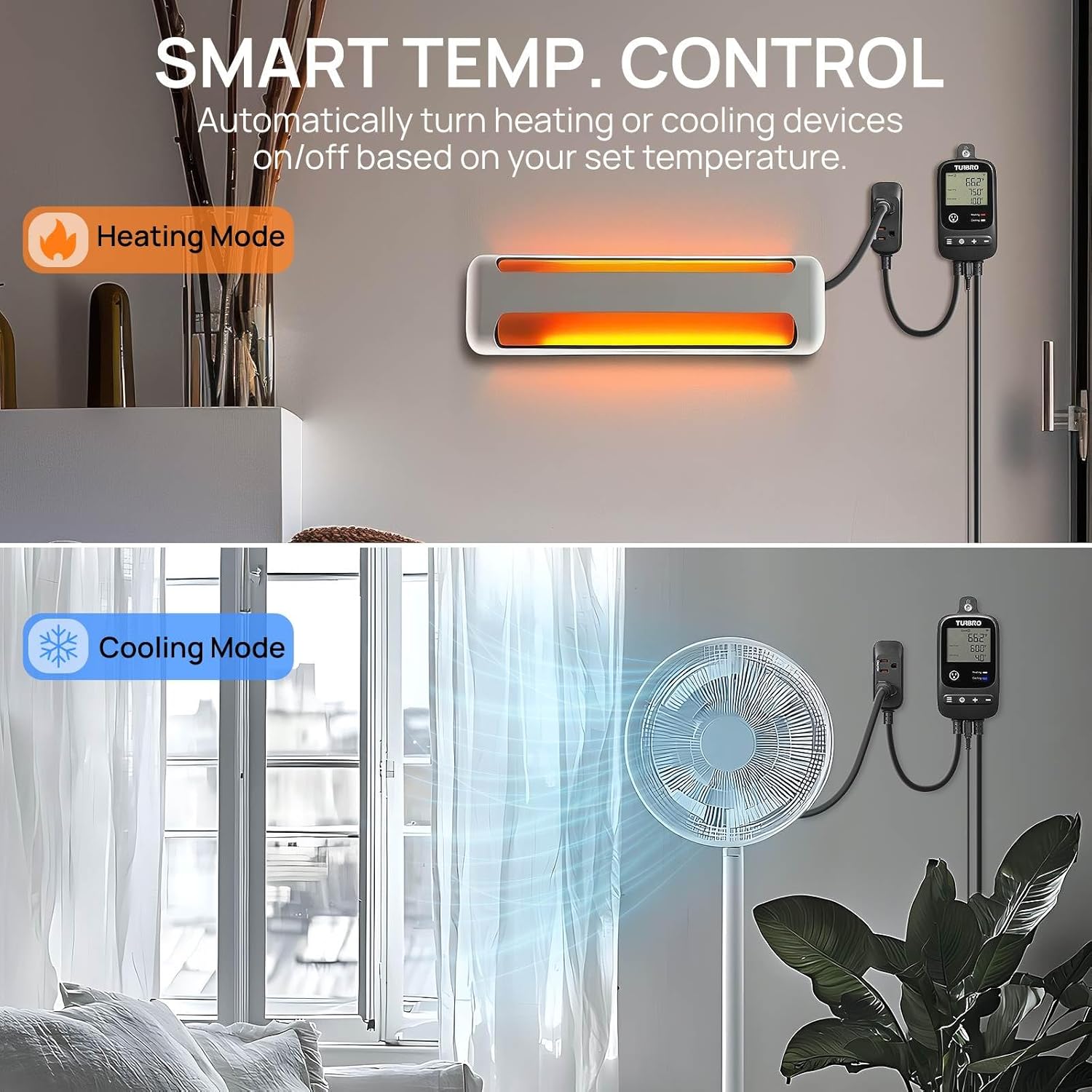 TURBRO Smart Temperature Controller Heating Cooling, WiFi-Enabled Thermostat with Timer and Temperature Monitoring for Home Brewing, Seedling, Greenhouse, and Reptile Terrarium, TC01