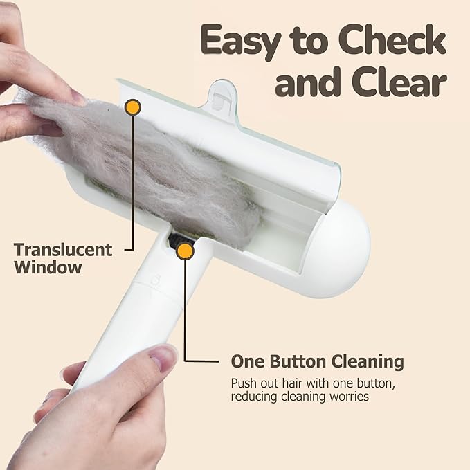 - QUICK MAINTENANCE: Large capacity compartment with easy-press release button for simple disposal of collected pet hair