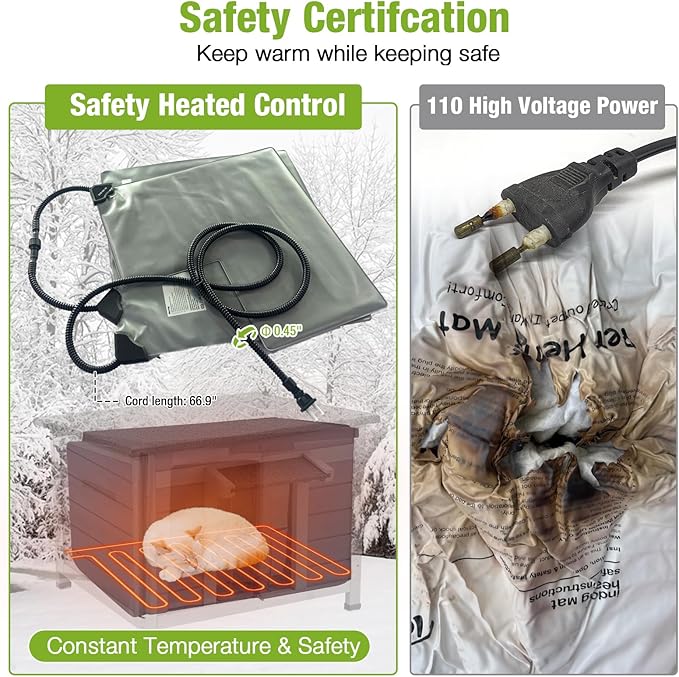 - Safe Heating System: UL tested heating pad with automatic heated control, temperature from 89 to 116°F. Build in High-temperature protection device preventing overheating or chilling, ensures consistent warmth. 6.5 ft chew-resistant cord adds an extra layer of safety