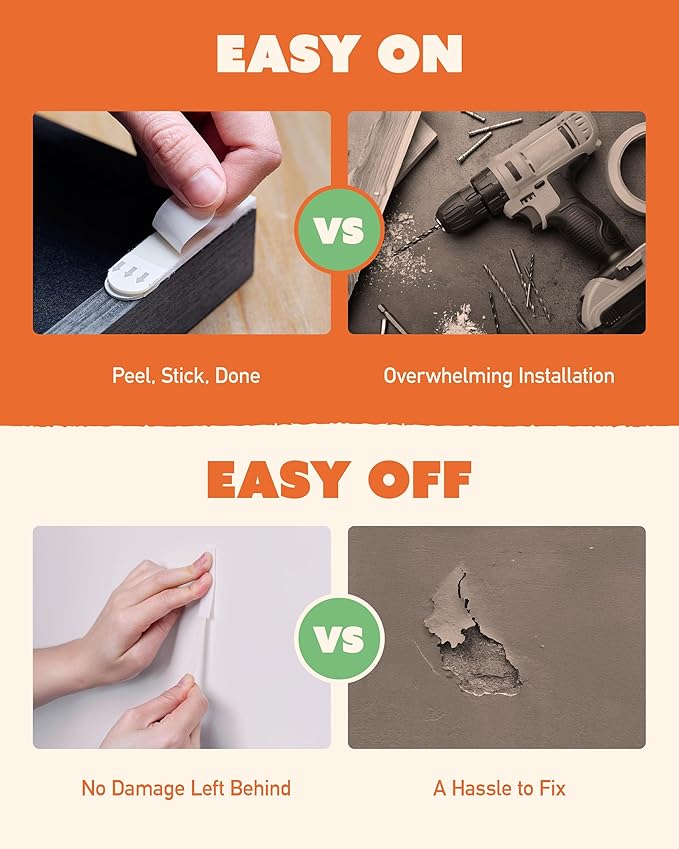 - Renter Friendly & Hassle Free – Set up in minutes with no power tools required and no wall damage left behind. Our strong and removable hook-and-loop mounting strips provide a secure hold while making installation a breeze.