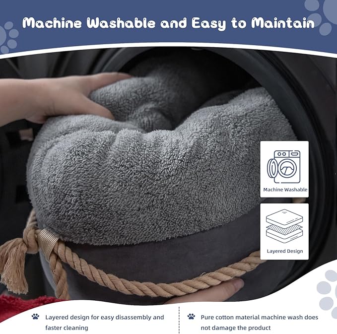 • Easy to Wash, Easy to Love: Machine washable for effortless cleaning—simply use cold water on a gentle cycle to keep it fresh. The removable cushion allows for spot or separate washing, so your pet’s space stays tidy, hygienic, and always welcoming