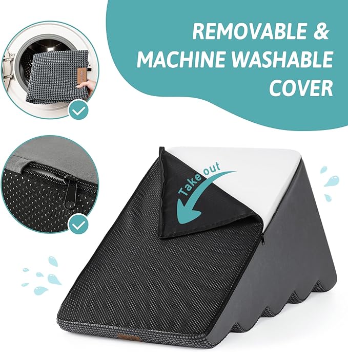 - HIGH DENSITY SPONGE: stairs for dogs to get on the bed adopt 30D high-density pure sponge, which provides better support while providing a soft return contact surface, reducing the pressure on the joints when pets repeatedly jump on high bed, sofa, couch and car. The stairs are covered with high-quality corduroy to provide additional stability