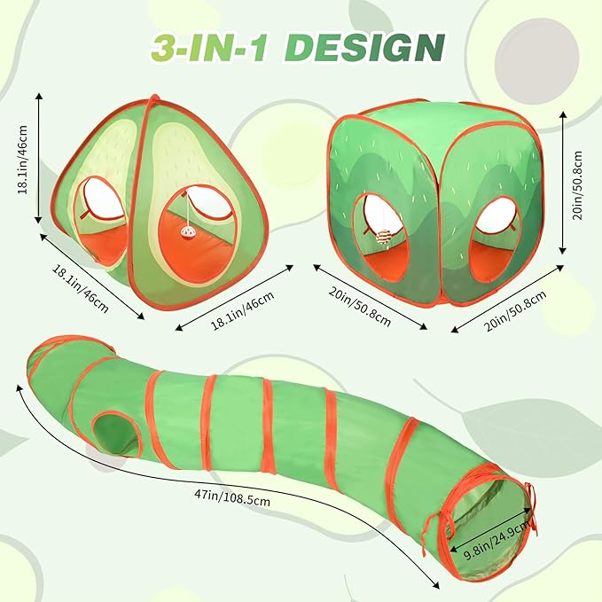 - 3-IN-1 design: Combined design of cat tunnel, cat cubes, cat tent. Compared with traditional cat tunnels, this upgraded tunnel nest makes a fun place for cats to lounge and play; Provide your pet with daily entertainment and a good place to hide