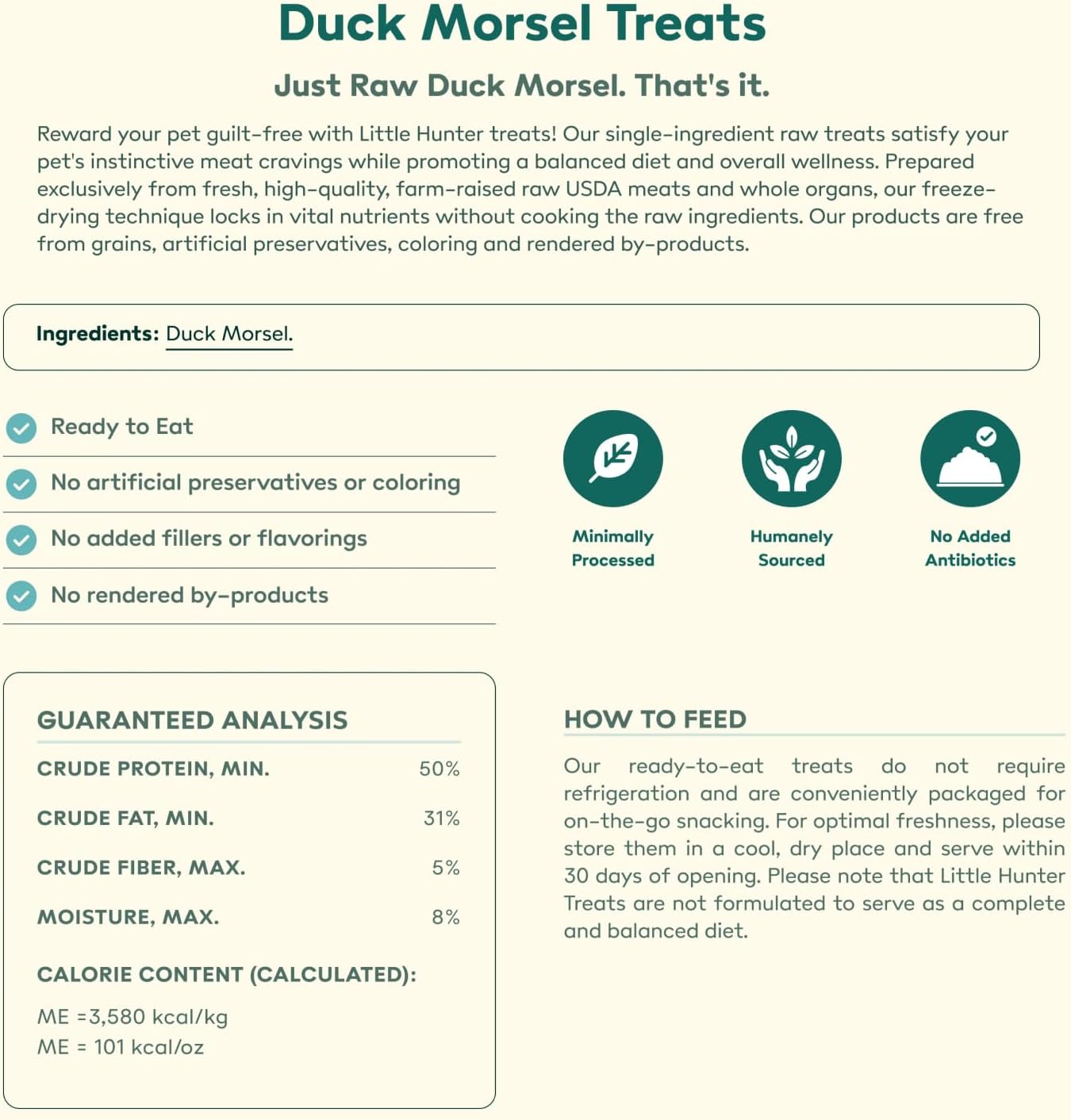 Little Hunter Freeze Dried Dog Treats - Duck Morsel - Raw Single Ingredient Duck Morsel Dog Treats for Snacks, Training, Dog Food Toppers - All Natural, Healthy Dog & Puppy Treats, 2 oz