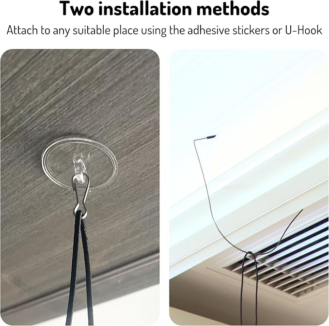 - 【Easy to setup and use】Featuring a door-clamp hook and adhesive sticker, this toy can be hung over door frames or adhered to suitable surfaces. Its retractable setup and adjustable cord cater to diverse active play styles, inviting your cats to flip, jump, pull, and chase, ensuring indoor cats remain engaged, entertained, and mentally stimulated through pouncing, clawing, and biting.