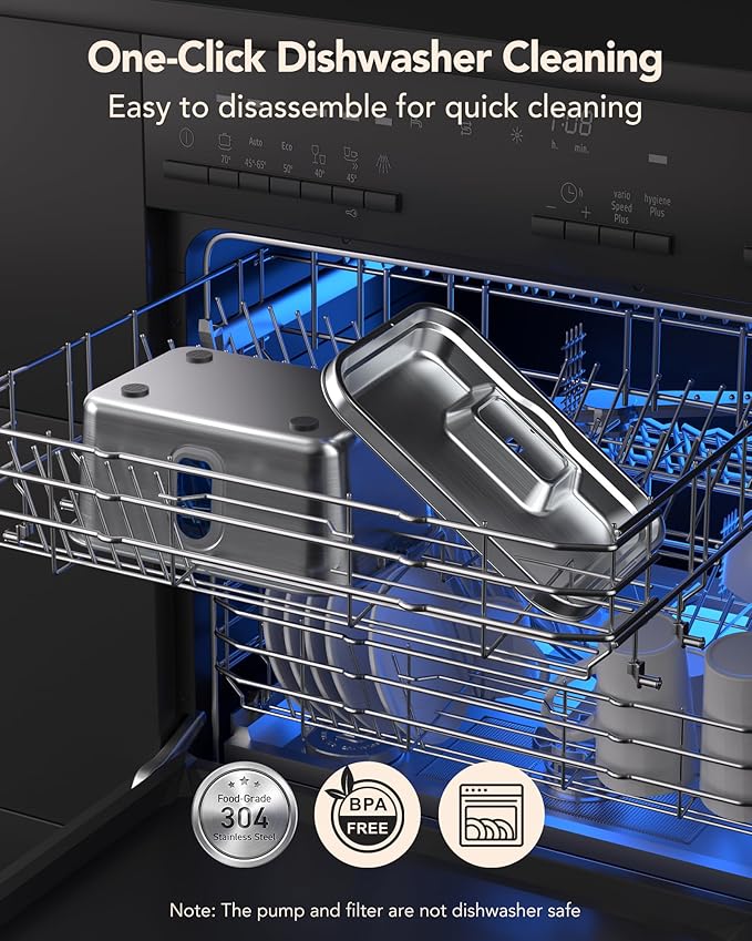 - Made from High-Quality 304 Stainless Steel: This fountain is far more long-lasting, safe, and sturdy than plastic alternatives. It’s BPA-free, ensuring a healthier drinking experience for your furry friend. The transparent window lets you monitor water levels at a glance, while it's dishwasher-safe, making cleaning and maintenance a breeze