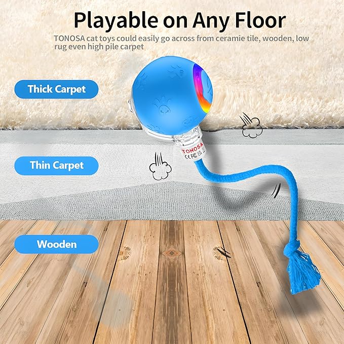- 【Playable on Any Floor】The powerful motor enables the interactive cat ball toy to move quickly on thick carpets, thin carpets and hard floors.