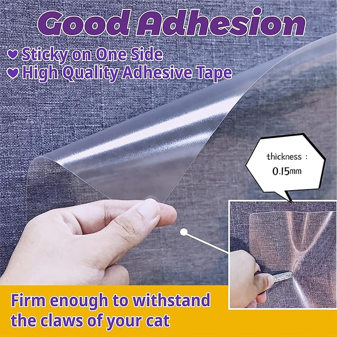 - 【Cat Dog Scratching Pad Tape】The product size is 11.8IN*9.8FT. Large size design can provide a large protection area for the furniture. It is easy to cut and apply,very convenient to use. This Anti-scratch Cat Training Tape helps To train your cat to stop scratching furniture and save your furniture from paw scratches. Can protect most of the furniture,as couches,chairs,walls,fabric sofas,tables,car interiors,doorways.