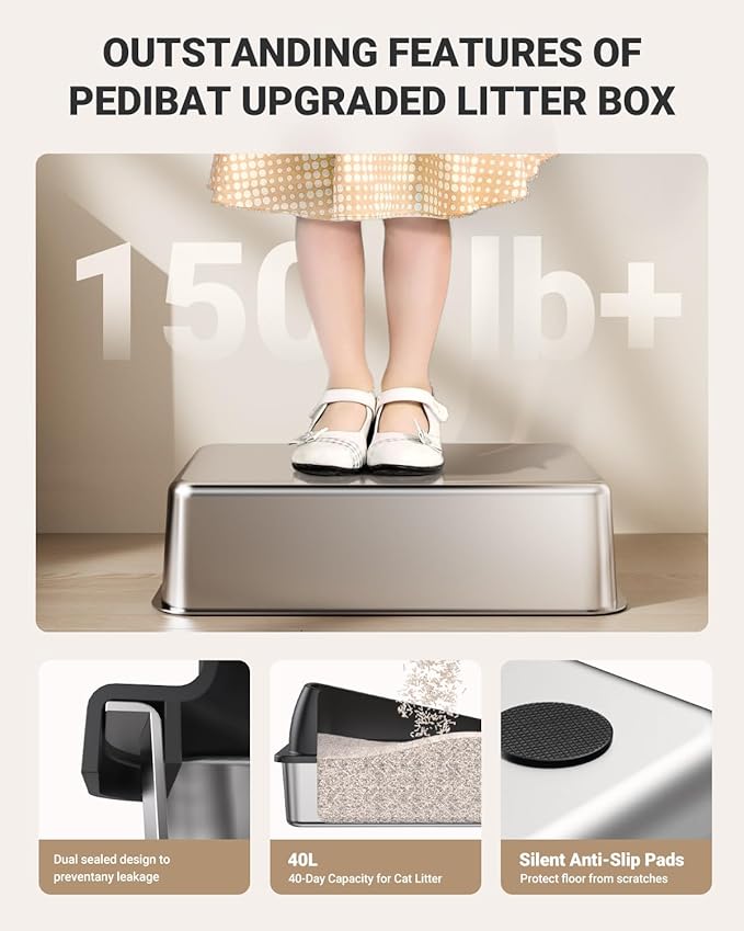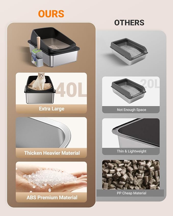 - 【Easy to Clean and Does Not Absorb Odors】: These stainless steel cat litter boxes usually have a smooth surface and non-stick coating, making it easier to scoop out clumps and keep the litter box fresh. Say goodbye to scrubbing and fighting stubborn residue, stainless steel cat litter boxes usually only require a quick wipe. Stainless steel remains relatively odor-free. This feature helps create a more comfortable environment for you and your cat.
