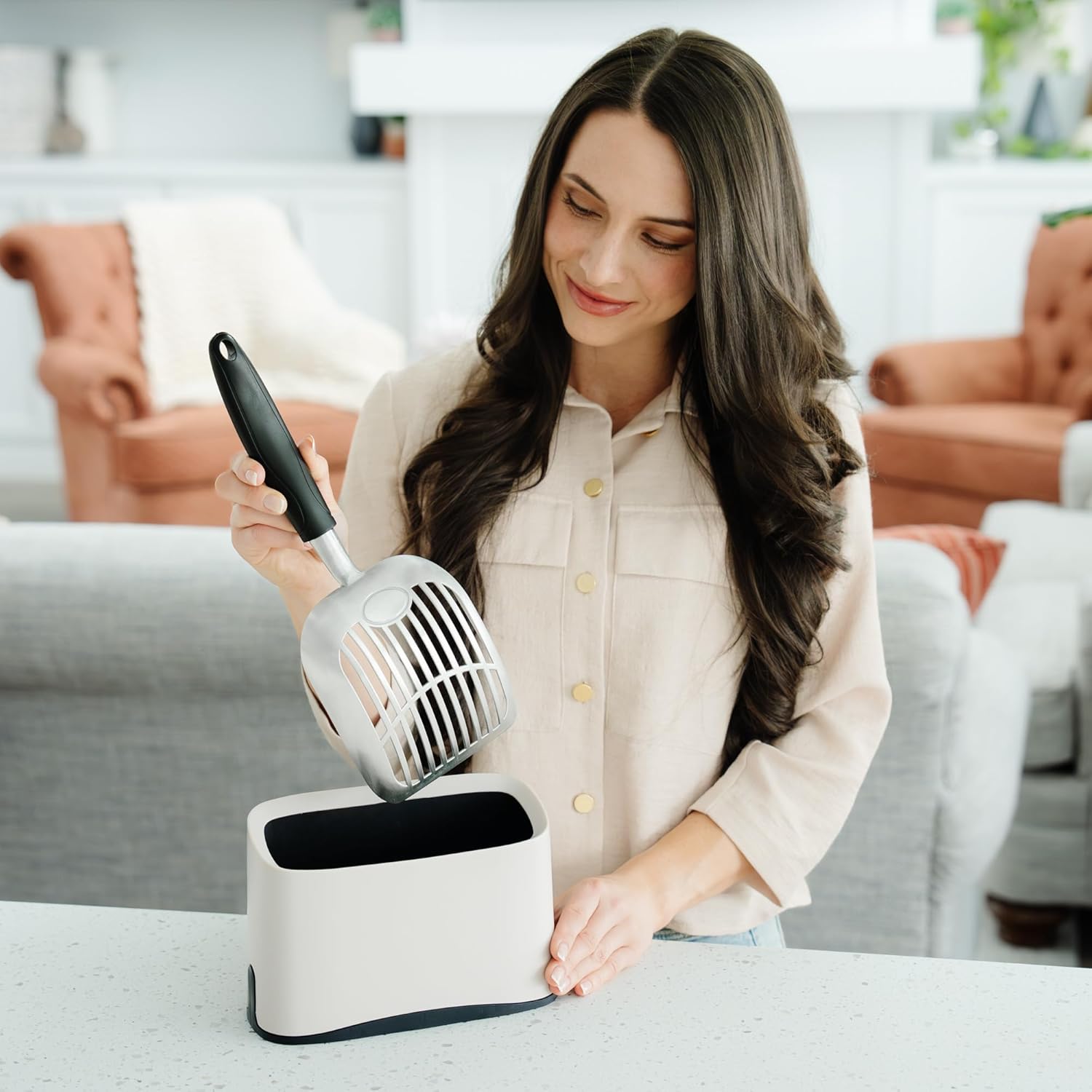 - [ERGONOMIC DESIGN MAKES LIFE BETTER] With our kitty litter scooper, you'll be happier, your cat will appreciate the cleanliness, and air quality will be noticeably better; This metal sifter for cats is designed for you to focus more on the fun parts of pet parenting (like scoop poop). For dustless, heavy-duty cleaning, this is the best litter scoop to add to your cat supplies, especially for multi-cat scooping homes as it eliminates dust caused unnecessary shaking