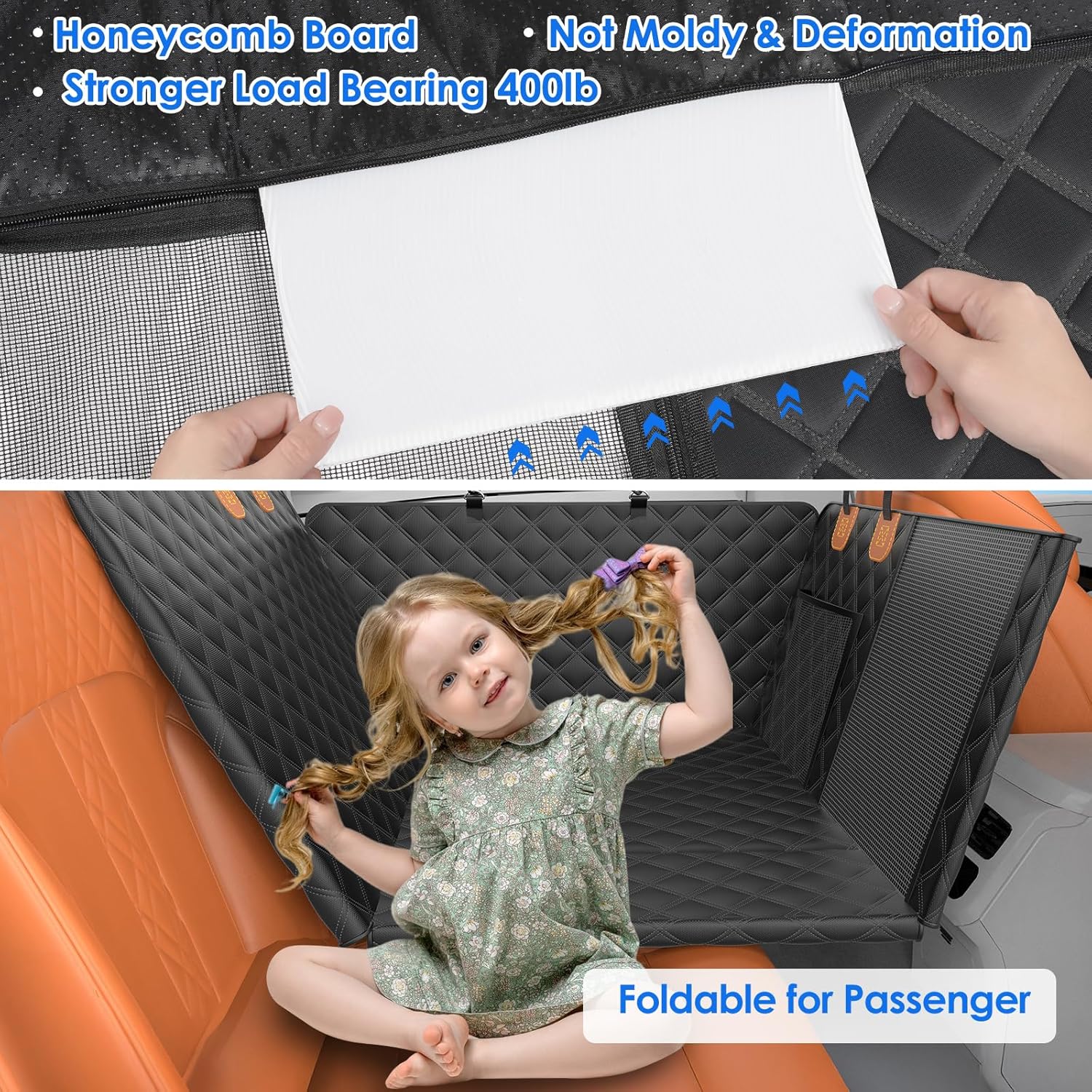 Back Seat Extender for Dogs with Hard Bottom/Large Space, Waterproof Dog Car Seat Cover Holds 400lbs, Sturdy Nonslip Pet Backseat Hammock for Cars/SUV