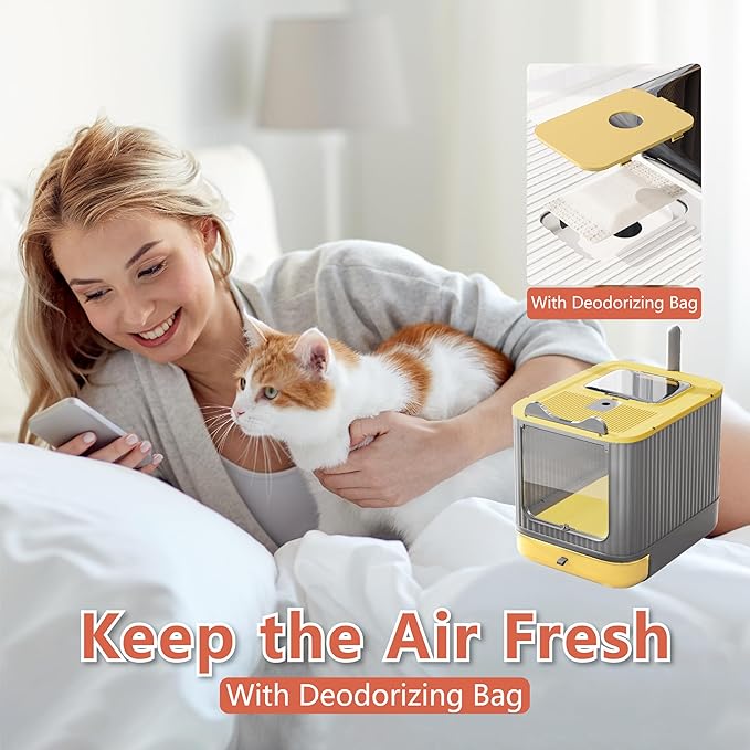 - 【Amazing Design-Easy to Clean】Enclosed cat litter boxes with drawer and scoop,easy to clean used litter and replacement of the new cat litter.Toilet for cats comes with a Deodorization bag,remove odor and keep the air fresh.
