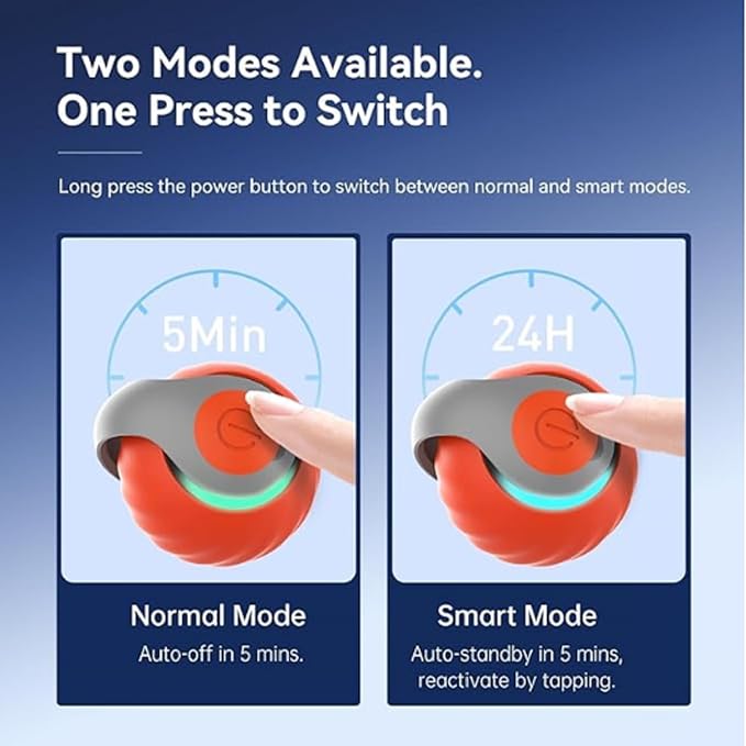 - SMART SLEEP MODE: After 5 minutes of inactivity, this smart ball cat toy enters sleep mode to conserve battery. It will automatically wake up after 2 hours, activated by a simple paw touch, so your cat can enjoy their playtime when they're ready.