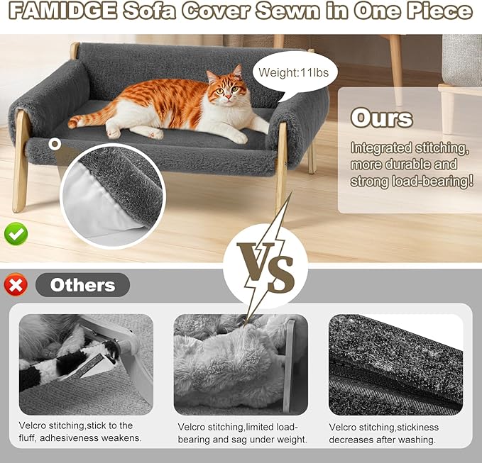 - Integrated Stitched Elevated Cat Couch Cover: No frustrating Ve-l-cro here! Unlike flimsy fasteners that wear out, trap lint, or lose stickiness, our seamless design keeps your cat furniture looking neat and staying durable. Perfect as a cat sofa or dog couch for your furry friend, it’s ideal for indoor cats and small pups who deserve a cozy spot. Whether you need a kitten bed or a small dog bed, this piece works beautifully in any room