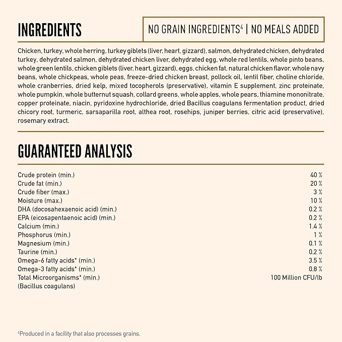 - Cat food made with WholePrey animal ingredients including protein-rich chicken and fish, nutrient-dense organs, and mineral-rich bone.