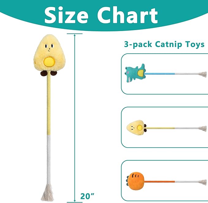 - High-Quality Material :This cat toy is made of high-quality cotton rope material, which is comfortable and bite resistant. The cute cartoon pattern contains cotton and catnip, which can attract cats to play happily, clean the cat's teeth, and maintain oral health
