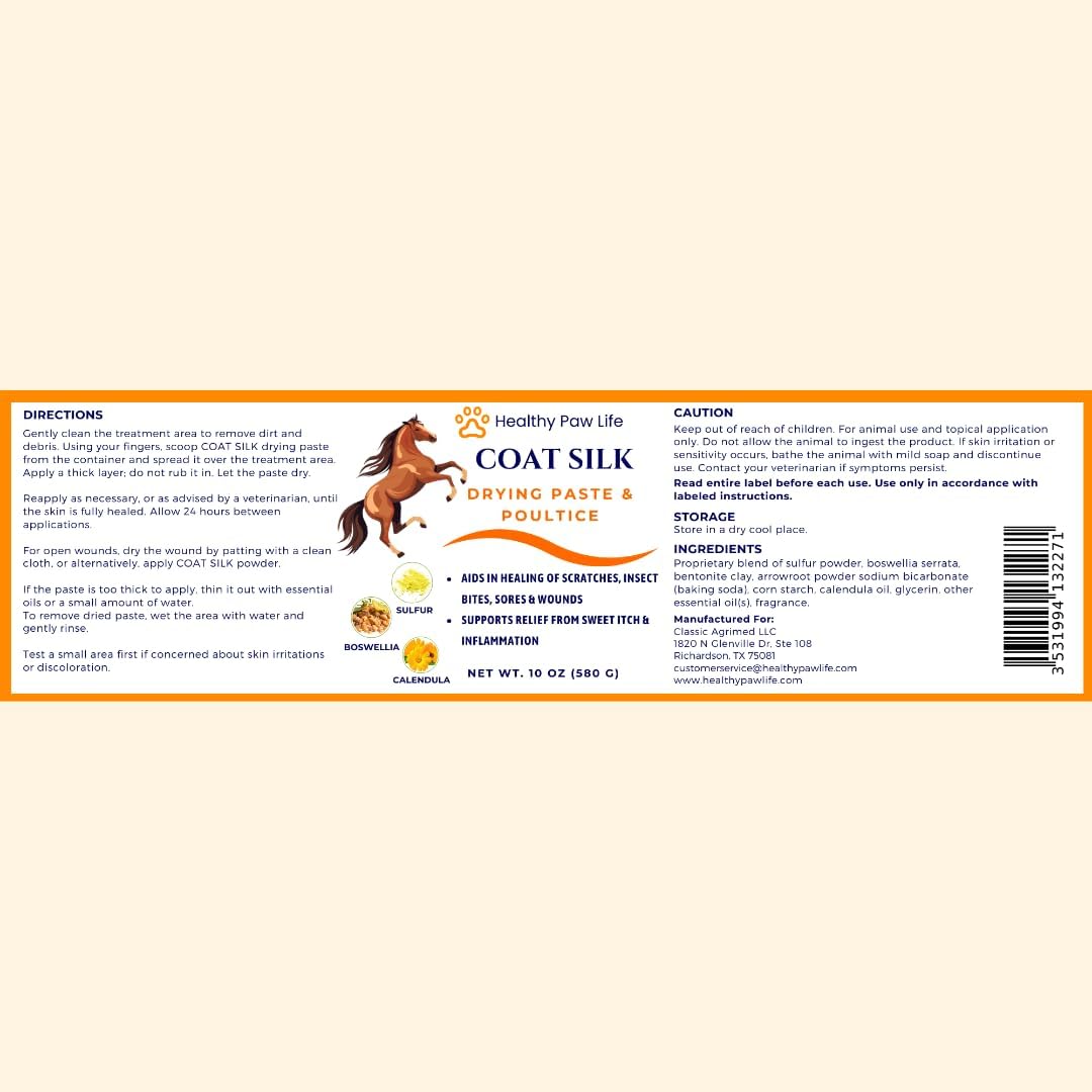 Coat Silk Drying Paste & Poultice for Horses – Natural Relief for Wounds, Scratches, Sores & Sweet Itch – Enriched with Sulfur, Boswellia & Calendula – 10 oz