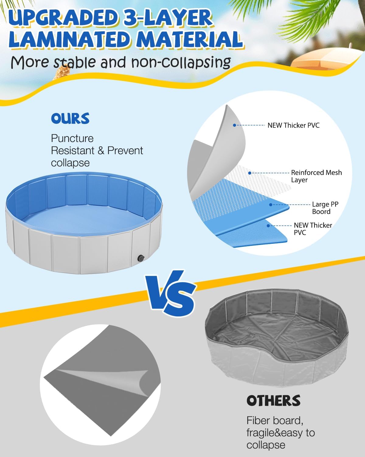 - PORTABLE & CONVENIENT – The dog bath pool is portable and convenient for people to carry and store at any time, which allows your lovely pets to enjoy in the water; There is no need to inflate