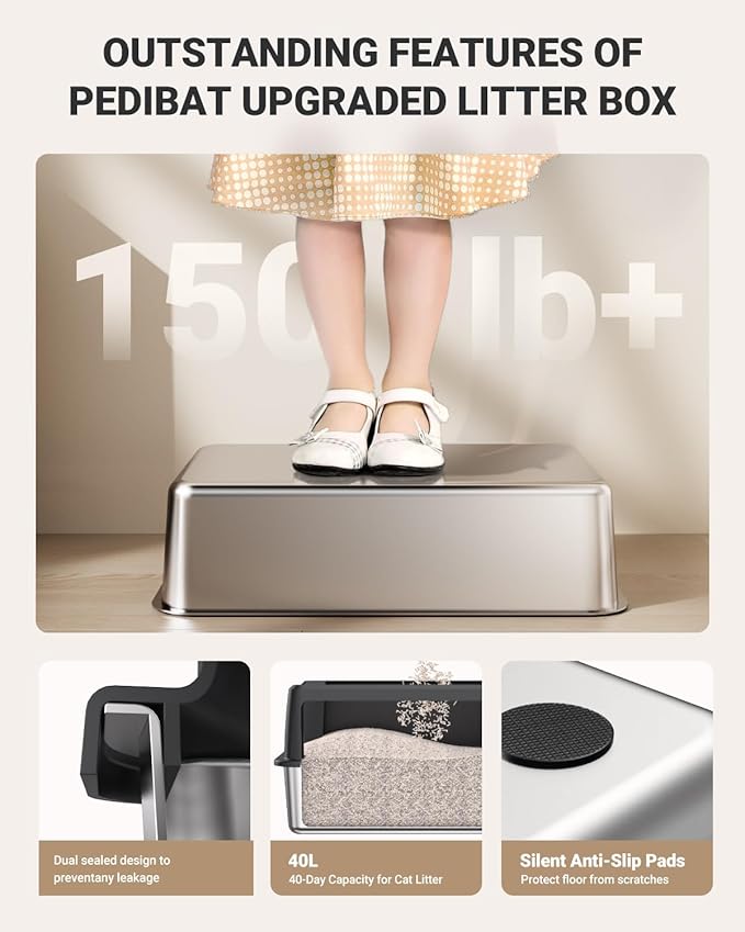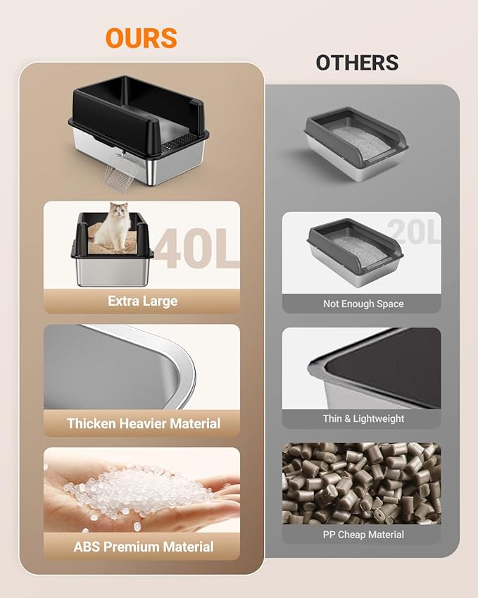 - 【Easy to Clean and Does Not Absorb Odors】: These stainless steel cat litter boxes usually have a smooth surface and non-stick coating, making it easier to scoop out clumps and keep the litter box fresh. Say goodbye to scrubbing and fighting stubborn residue, stainless steel cat litter boxes usually only require a quick wipe. Stainless steel remains relatively odor-free. This feature helps create a more comfortable environment for you and your cat.