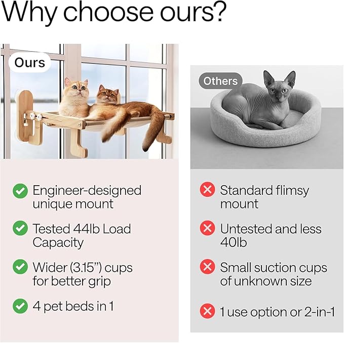 - Quick Installation with All Accessories Included – Comes complete with suction cups, screws, cushion, and instructions. Turn any window or flat surface into a cozy elevated cat bed in minutes.