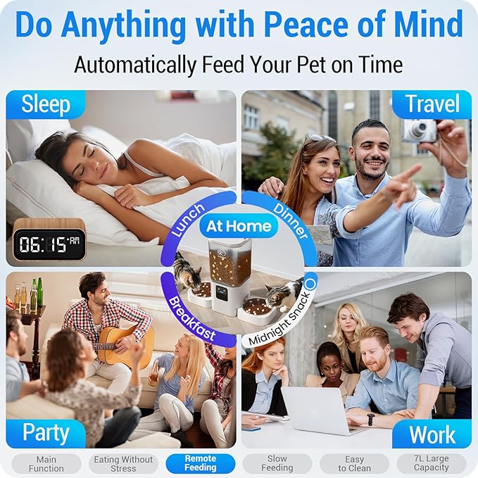 Automatic Cat Feeder with Slow Feed for 2 Cats: 5G WiFi Automatic Dog Feeder with 7L Large Food Storage, Cat Food Dispenser with Alexa for Multiple Pets, Detachable for Easy Cleaning -29 Cup