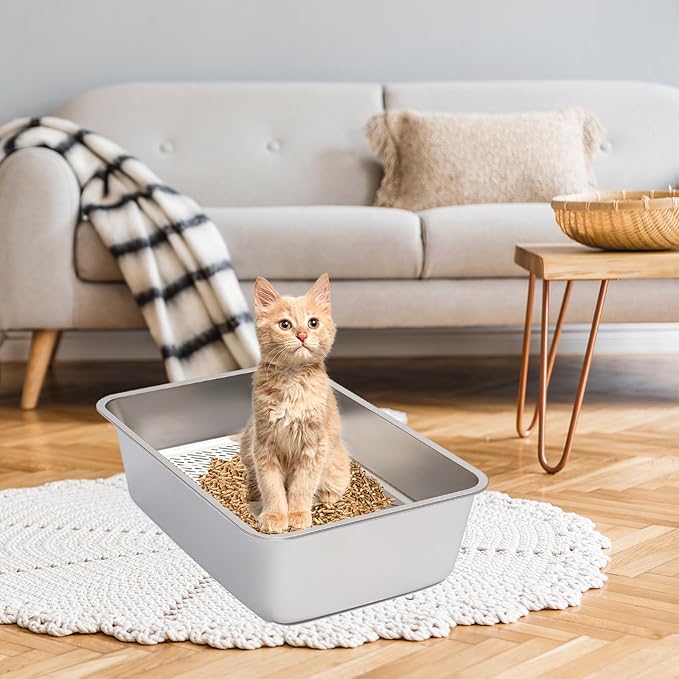- 【Durable and Long-lasting】Made from high-quality stainless steel, this litter box is rust-proof, anti-scratch, and easy to clean, providing a long service life without worrying about stains or odor residue.