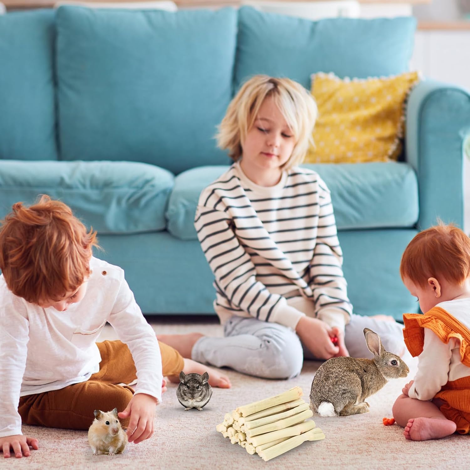 - for Small Animals - Package Weight Above 2 lbs. Each Chew Stick Up to 5 Inches Long. Sweet bamboo sticks is ideal for rabbits, chinchillas, guinea pigs, hamsters, parrot, hamster, Degus, gerbil and rodent species. Feeding your pet sweet bamboo food reduces the boredom and anxiety, brings them closer together and adds the interactive fun. You need not worry about furniture and wires being ruined any more.
