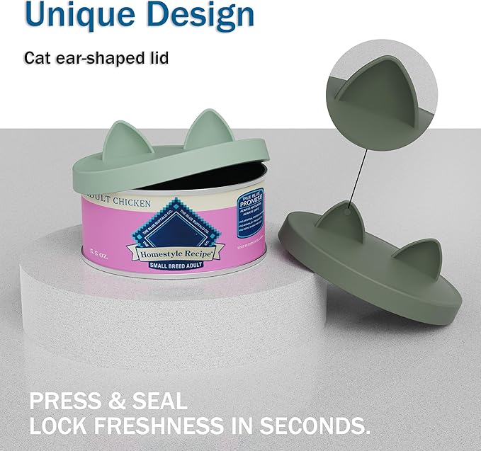 OHMO 2 Pack Pet Food Can Lids, (3.3 in / 85mm) Silicone Pet Food Can Lids Covers for 5.5 oz Cat and Dog Food Cans, Camo&Light Green