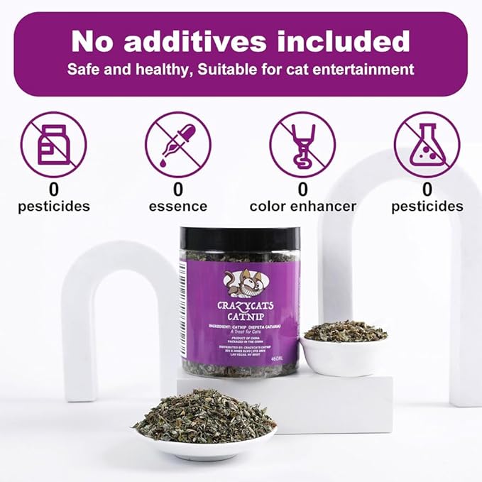 - 460ml catnip, packed in a high-quality plastic bag and resealed to lock in freshness.