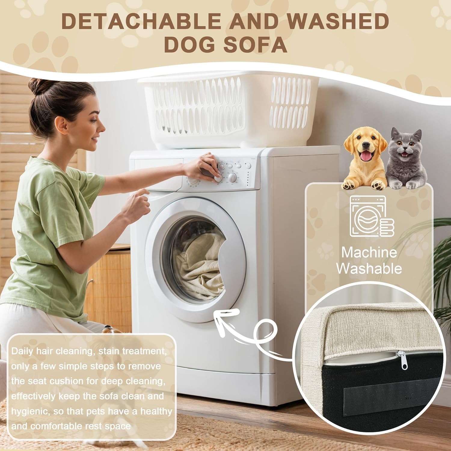 Dog Sofa Couch for Medium to Large Dogs, 31" Memory Foam Dog Couch with Washable Fabric, Removable Cushion, Sofa Bed for Medium and Large Dogs, Beige